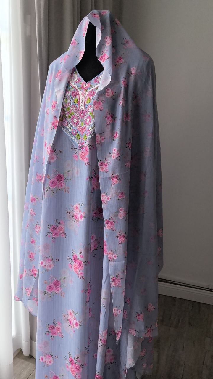جلابية هندية تطريز مع شيله – قماش قطن خفيف للصيف وجميع المواسم. مقاس XXL طول 56