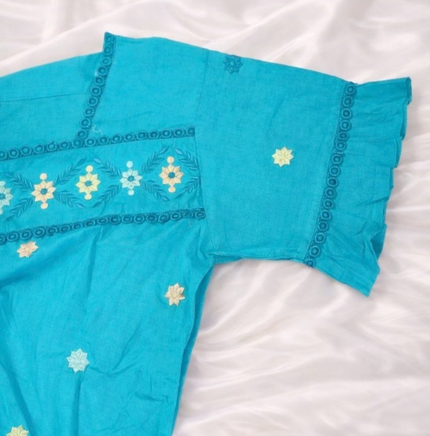 جلابية الهند تطريز خفيف _ لباس منزلي – قطن خفيف ناعم للصيف وجميع المواسم / القياس L _ أكمام قصيرة 10 انش – الكول 59.5
